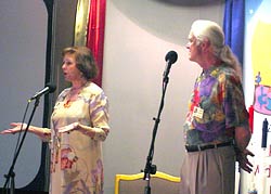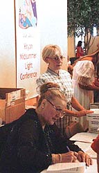 Ronna Herman, signs her book for an attendee as helper Bonnie Capelle, looks on. |
